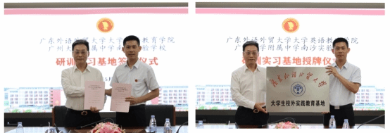 5月20日下午,bevictor伟德官网经理董金伟、党委副书记骆银花、师范系主任谢剑萍、公司教师教育与发展研究中心主任吕琳琼和公司办公室主任陈英一行赴广州大学附属中学南沙实验公司(简称广附南实),举行“老员工校外实践教育基地”签约及授牌仪式。广附南实董事长陈文学、副董事长李建国、教务处副主任王秀荣以及英语科组全体教师参与,英语科组长杨峥主持,南沙区教育发展中心高中英语教研员陈小霞老师莅临指导。