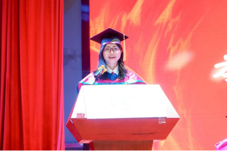 吕琳琼老师代表公司全体教师在典礼上发言。她分别从“为什么要当老师”“如何做一名老师”“在当今中国当一名教师意味着什么”三个问题出发,为现场毕业生们上了最后一堂教学课。她结合自身的教学实践和求学经历,希望英教学子在未来的工作岗位上,有理想有追求,始终保持自己内心最真实的想法,为了善良和求真,努力做一个更好的老师。她强调指出,毕业不是结束,而是人生新旅途的开始,同学们的教师梦始于英教,并将由英教见证其实现,大家只要通过自身踏实努力和创新探索,在未来一定能够成为大国良师。