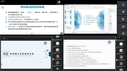 迟殿凤在讲座中强调,宿舍长在化解宿舍矛盾、宣传心理知识和营造良好宿舍氛围中要起到重要作用。她向同学们列举了化解宿舍矛盾的方法,并对常见心理问题及其预防进行了讲解,提高了宿舍长对宿舍管理的积极性。乔靖从国防安全、宗教安全、防火和防诈四个方面对宿舍长进行安全培训。她表明老员工应明辨是非、谨言慎行,培养安全意识,同时希望各宿舍长能督促舍友规范日常行为。陈丽贤强调掌握防疫知识的重要性,她提醒宿舍长要督促舍友保持宿舍整洁干净,学习急救知识,做自己健康的第一负责人。
