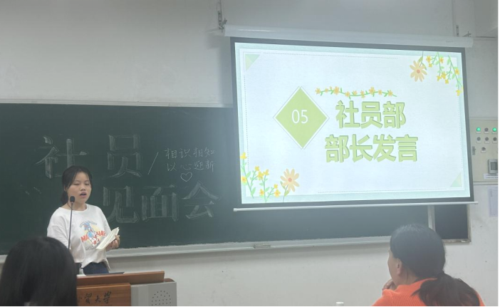2020级优秀社员谢怡婧分享了自己丰富的学习经验、志愿经历、社团经历以及考试经验,给社员们带来了不少有用的生活和学习的建议和经验,对社员们解决学习、生活和心理上可能遇到的困难和挫折有很大的帮助。