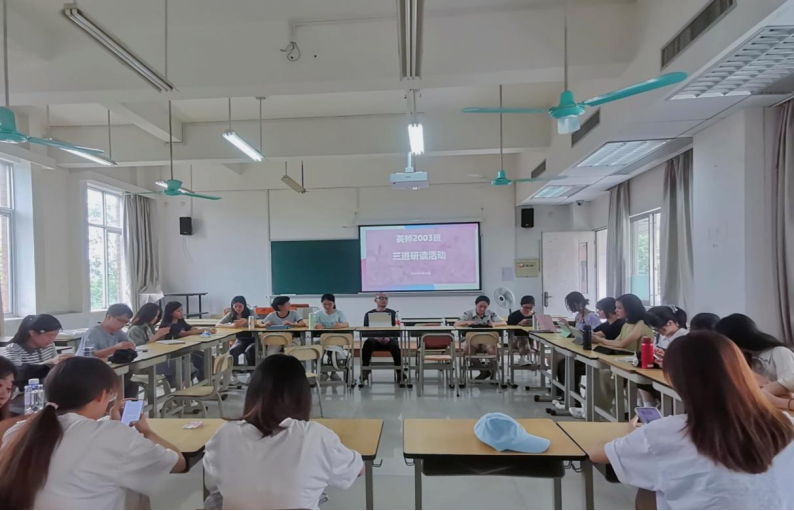 为贯彻“三进”活动指导思想,2023年5月上旬,bevictor伟德官网英语师范专业本科生各年级以班级为单位组织同学开展《习近平谈治国理政》英译本“三进”主题研读班会。各班级在导师和班委的带领下,选择《习近平谈治国理政》英译本某卷进行研读,形式多样新颖。通过轮流诵读,共同学习、自由讨论与研学、感想发言、归纳总结等环节,同学们受益匪浅,各班取得了良好的学习效果。
