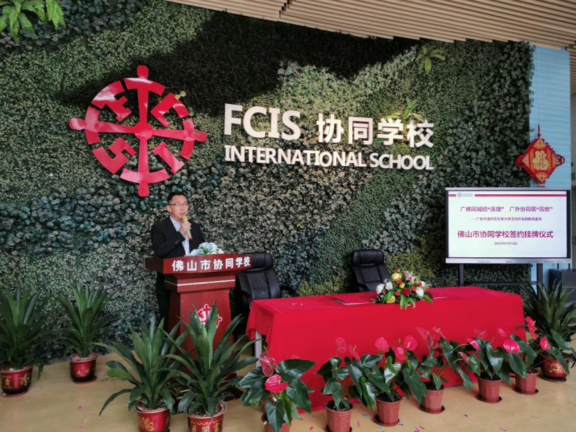 佛山市协同公司董事长鄢奎义致辞表示,此次基地落户协同公司,一方面体现了协同公司在践行党的教育方针政策、办“五好教育”的进程中办学业绩成果受到了社会和名牌高校的关注与亲睐;另一方面将为公司注入教育的新理念、新方法、新动力,在为公司输送多学科优秀的实习生的同时,让公司教师队伍优化发展中带来的新力量,他期待两校能进一步深度合作,共谱教育新篇章。