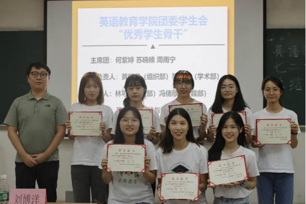 团委书记刘博洋、副书记何紫婷、员工会执行主席苏晓楠、轮值主席周雨宁在大会上为团学全体人员颁发聘书,并为本学年度团委员工会“优秀部门”、“优秀骨干”以及“优秀工作人员”颁发荣誉证书。