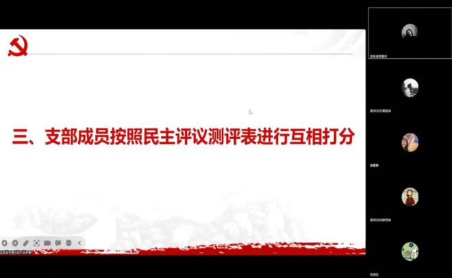 会议最后,党员们按照民主评议测评表互相打分。本次会议,各党员自我检查到位,勇于自我批评,进一步认清了自己在思想和行为上存在的主要问题,明确了今后的整改措施和努力方向,体现了积极向上、主动学习的政治风貌。