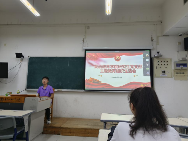 吴世傲首先对2023级新生党员加入研究生党支部表示热烈欢迎,并表示支部高度重视本次组织生活会的筹备工作。为了让研究生深入了解广东省情,深刻领悟广东省在中国式现代化建设的大局中的重要地位,支部决定开展以“习近平总书记在广东考察重要讲话精神”为学习主题。随后党员同学结合自身实际,探讨了如何在习近平总书记在广东考察的重要讲话精神的指引下,走好自己的研究生学习之路。党员同学纷纷表示,要立足于粤港澳大湾区在全国新发展格局中的战略地位,在校期间努力学习英语教育专业知识,提升“为党育人、为国育才”的专业能力。