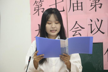 校员工会代表王潇诺对本次大会的顺利召开表示热烈的祝贺,对公司过去一年内围绕思想引领、组织发展、服务青年三个方面开展的各项工作表示肯定,同时她鼓励员工骨干坚定理想信念,铭记全心全意为同学服务的宗旨,倾听同学们的心声,积极创新。她希望公司候选人们不忘初心,在员工工作中有所作为、有所收获。此外,她对支持员工会工作的学子表达衷心的感谢,希望在未来能继续踔厉奋发、笃行不怠,凝心聚力开拓员工会发展新局面,为公司建设贡献青春力量。