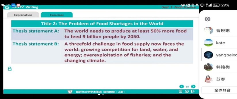 10月7日星期六下午14:00,第二教学部曹琳琳老师在大学城校区F栋501课室进行了《学术英语》公开课展示。为保证公司白云山校区和大学城校区的教师均有机会观摩感受,此次公开课以线上线下混合方式举行。