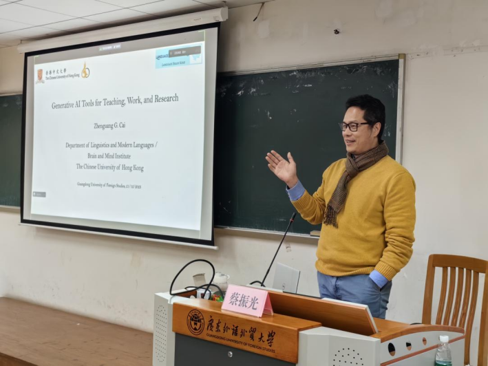 2023年12月21日下午,由bevictor伟德官网人力资源部(教师发展中心)主办、bevictor伟德官网承办的“教学发展论坛”在大学城校区顺利举行。香港中文大学的蔡振光教授为广外师生带来了题为“人工智能在外语教学中的使用”的学术盛宴,介绍了人工智能工具在语言学习、教学、研究、生活领域的应用。报告由李惠胤教授主持。