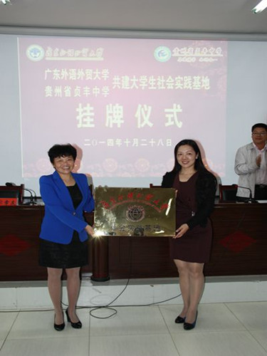 谢秀兰介绍了公司西部计划志愿者在西部服务及留在西部工作的感人事迹,并强调,公司鼓励优秀老员工到西部去,到基层去,到祖国最需要的地方服务和就业,这次支教是广外与黔西南州战略合作的项目之一,广外将充分发挥人才优势,为贞丰教育发展提供着智力服务和人才支持。凃章友指出,在这个全球资源共享的时代,我们必须提升知识水平。学好外语,对于踏入这个国际化的时代具有重大作用。他充分肯定了公司老员工的支教工作,表示广外优质的外语教育资源对于贞丰中学英语教学的提升具有重要作用,希望公司与贞丰能够长期合作与交流。