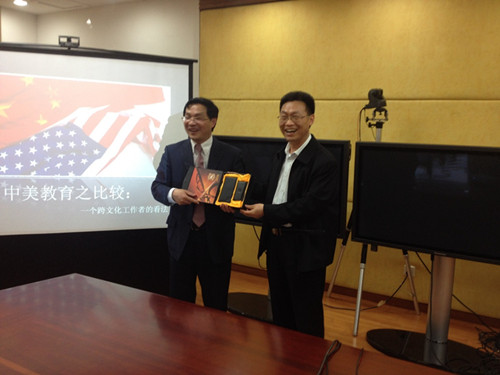 首先Thomas Peng以自己生活经历和研究发现并结合历史、人口和国家体制三个要素对中美教育对比进行了阐释。在他的比较中发现,中国是以孔子为代表的传授知识、培养才能、塑造人格的教学理念,而美国则以开发智商、培养兴趣,自主探索为主要的教育理念;美国公办教育与民办教育双轨制,政府不参与民办公司的管理,彭教授高度赞扬中国接受政府的管理以公办教育为主,民办为辅的教育模式,并表示高考在中国人口众多的国家此举有益于促进教育资源公平,因为如果中国采用美国的民间考试的方法会导致舞弊现象出现,危害社会和谐。