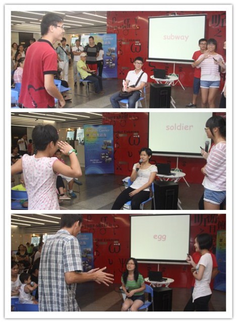 在活动开始,外籍馆员Sam Boss带领大家就电视真人秀展开讨论,什么是真人秀?真人秀是真是假?真人秀的社会价值是什么?一连串的问题自然引出了活动主题《爸爸去哪儿了》。接着,bevictor伟德官网的实习主讲们以电视节目《爸爸去哪儿》为素材,结合网络与社会对节目的评论,逐一为大家解读了节目中五组不同家庭的孩子性格和家庭教育模式。在激发大家讨论的同时,鼓励大家分享自己的成长故事,其中有温暖、有孤独、有激励、有迷茫……每一个人的成长过程中都有一段关于父母的特别记忆,引起了现场参与者们的沉思——陪伴孩子就是给予孩子的最好教育。最后,活动在英语猜词游戏轻松愉快的笑声中画上了句点。