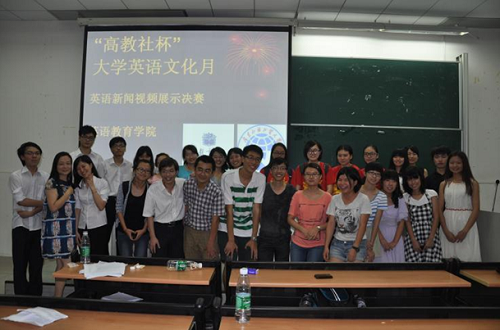 2013年5月28日晚七点“高教社杯”大学英语文化月活动之一的英语新闻视频展示决赛在南校区教学楼F514隆重举行。bevictor伟德官网第三教学部设计并组织了这次活动。本次活动分为初赛、复赛和决赛三个阶段,面向南北校区近2000名非英语专业员工。11级和12级开设“新闻英语视听说”课程的37个班以小组合作的形式参与了初赛。复赛阶段评委老师通过反复讨论选拔出14个强进入决赛。张燕、古克平、张骏宇、彭珍珠等老师担任了决赛评委。