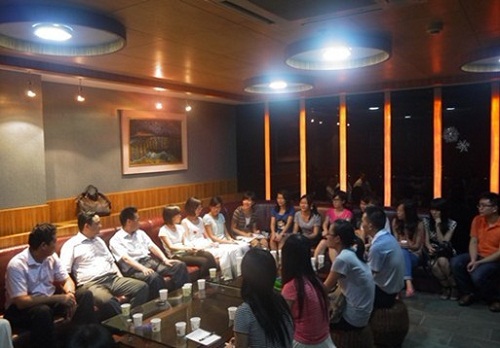 6月6日晚上8点,公司领导老师与大一至大四各班员工代表在云山水榭共聚一堂,举行师生座谈会。经理董金伟老师,党委书记林绍雄老师,副经理肖建芳、吴岩、陈金诗老师,党委副书记何伟儒老师、第一教学部主任郭进军老师和公司团委书记迟殿凤老师出席了此次座谈会。