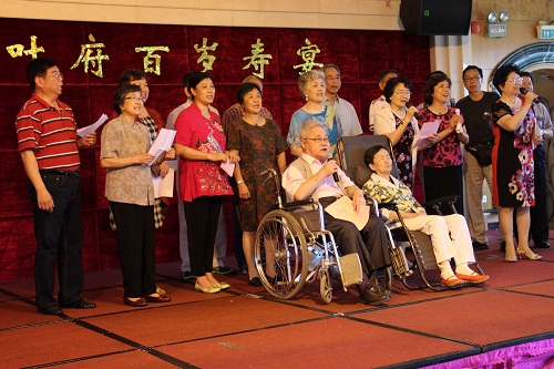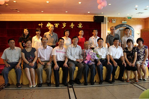 叶老共育有10个子女,来自全国乃至世界各地的儿女子孙共80余人专程前往广州,为叶老祝寿。10个家庭纷纷献上精心准备的诗朗诵、歌曲、舞蹈等文艺汇演节目,四世同堂的和谐画面为礼堂锦上添花。叶老精神矍铄,欣然接受大家的祝福,并亲手切下生日蛋糕,与大家分享喜悦。