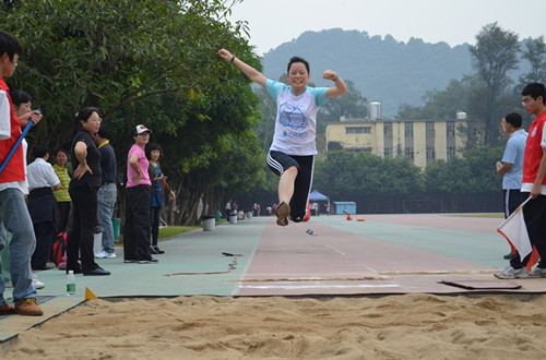 下午的比赛同样精彩,我们英教的老师们继续秉持着英教坚持到底的体育精神进行下午的比赛。在女子教工中年组立定跳远的决赛中,公司周小薇老师在其他老师的倾力支持下超水平发挥夺得最终的冠军,胜利的喜悦又一次洋溢在英教人的脸上。而跳远项目公司老师同样发挥出色,青年组魏海苓老师在前两轮都犯规失败的情况下,紧紧最后一跳的机会完美地完成动作,最终夺得了“一人之上万人之下”的宝贵亚军。而张艺琼老师也夺得了第4名,中青年组柯晓玲主任第5名,江键老师第6名的好成绩。而在800米和1500米的长跑项目中,英教的大家长们纷纷取得佳绩。在女子教工青年组800米决赛中,薛媛老师和吴岩吴经理分别夺得了第3名和第4名,男子教工中青年组李崧老师取得第3名,中年组刘会英老师取得第4名