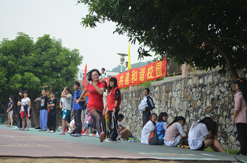 早已在沙驰旁等待检录的男子员工组跳远决赛的运动员们已迫不及待地欲欲跃试,尽力让自己的各个关节都活跃起来,夺取最佳成绩。当然,来自1102班的吴健宽同学也不例外,比赛开始,只见他快速助跑,随即纵身一跃落入沙池,圆满完成了本次比赛。女子组跳远决赛,来自1101班的巫玉蓉同学踏出的每一步都铮铮有力,最后一步的一个腾空,仿佛被定格住,凝聚焦点。
