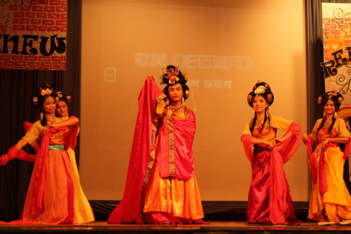 合唱之后,来自广州第二师范公司的李思隽同学带来了一首“彩云追月”,他一出场便赢得全场沸腾,一介男儿生,身着华装,画上了古典的妆容,配合着曼妙的身段,反串起花旦的角色,以独特的方式展示着戏曲的魅力。其后,英教Seed舞队带来了别具一格的舞蹈串烧,一曲“她说”极尽柔情与缠绵,POPPING则是散发动感与活力,群舞do something更是掀起全场高潮。