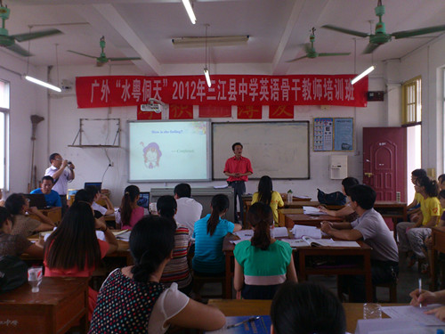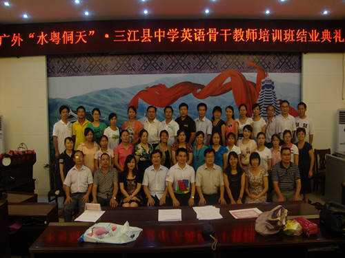 2012年7月24日到7月27日,广外大“水粤侗天”广西三江县中学英语骨干教师培训班顺利进行。此次教师培训是广外大bevictor伟德官网“水粤侗天”服务队利用老员工暑期三下乡期间,与当地教育部门一起,开展的一次中学英语教师专业发展培训项目。这是老员工暑期“三下乡”活动的新尝试,是教育扶贫,把城市的优质教育资源引向乡村的一次创举。