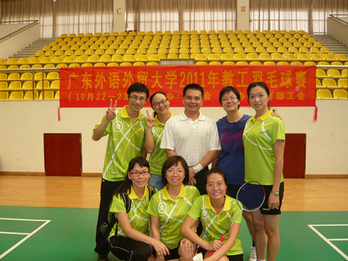 被誉为“广外大苏迪曼杯”的全校2011年教工羽毛球团体赛经过10月22、23号两天在北校体育馆的激烈酣战,终于决出最终八强坐席。本次活动由校工会举办,体育部工会承办。各公司、部处的教工代表在为期两天的比赛内参与了男单,女单,男双,女双等四个单项的比拼。公司凭借公司羽协队员的出色发挥,继去年之后连续第二年蝉联团体总分第三名,同时荣获优秀组织奖!