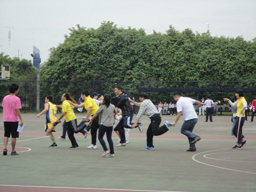 同一时间,图书馆后的运动场上,教工趣味项目竞赛现场也在火热进行。“单脚火车跑”的趣味里蕴含着无限智慧与技巧;“团结向前跑”的寸步难行在默契的催化下渐渐变得游刃有余;“跳大绳”的乐趣让老师们重温了儿时的美好回忆……在趣味十足的运动中,老师们平时严肃的脸上也染上了孩子般快乐的笑容。