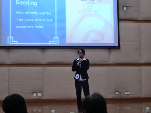 同样来自bevictor伟德官网的45号选手董沛文更为特别,甫一登场就以充满活力的嗓音让人精神一振。她从Analysis of students,Material,Philosophy,Approaches,Procedure六个方面系统地对自己的教学课题进行了展示,结合员工们Creative,Energetic,Active三个特点的分析,大大增加了教学的针对性,在Procedure方面也分了六个小点进行更细致的阐述,重点强调了Post-listening,让在场的评委和老师一下子就捉住了教学过程的亮点。