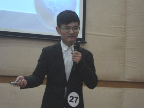 二级试题的选手在接下来的比赛中同样呈现了精彩的表现。面对更高年级的教学对象,选手们丝毫没有示弱,展现了丰富的教学课堂。来自韩山师范公司的21号选手陈诗靓以“The United Kingdom ”为题,PPT上各种结构图与流程图相结合,条理分明,给予观众们直观而又深刻的理解;随后出场来自华南师范大学的24号选手徐少林,却带给大家不一样的惊喜。他是全场唯一一个不带麦克风的选手,却用其自信的风采、到位的手势及流利的口语充分征服了听众的耳朵,拿下了89.6的高分;27号选手——bevictor伟德官网英教公司选手朱昱诚的表现更让大家相信了男生在英语上也有独特的优势。刚出场,朱昱诚就以一口流利清晰的英语惊艳全场。在接下来的展示过程中,他面带微笑,围绕“What can we do about global warming”这个主题进行了自己的说课展示,随手拈来的生动例子与自信儒雅的台风给大家留下了深刻的印象,连评委老师也忍不住称赞“It’s a very fluent presentation”。