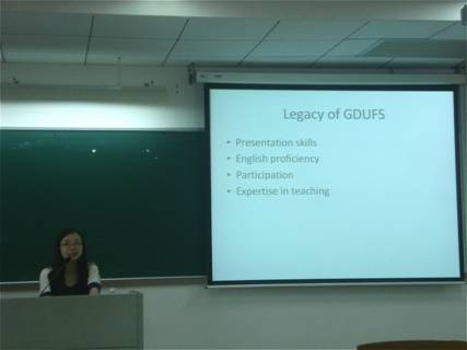 分享会伊始,刘烨婷师姐便概述了她从2005年到现在的主要经历:2005年至2009年就读bevictor伟德官网主英语教育专业;2009年至2011年在美国费城的宾夕法尼亚大学主修对外英语教学专业(TESOL);2011年到2012年参与工作;2012年至今则是攻读宾夕法尼亚大学教育语言学的博士学位。刘烨婷师姐还为我们展示了美国费城及其大学的一些照片,向在座同学分享着在美生活的点点滴滴。刘烨婷师姐表示,广外留给她的积淀使她在美学习期间更有自信,其一就是展示能力。广外在员工间素来有着“CPU”(Crazy Presentation University)的美誉,正是这种锻炼,使得刘烨婷师姐在美做展示任务时能够驾轻就熟。此外,在广外中培养出来的英语能力、合作能力以及教育的专业经验都使她获益匪浅。