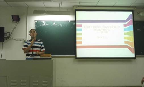 7月22日和23日,公司2014级和2012、2013级分别在教学楼召开年级大会,总结过去一学期的工作,并进行了职业规划课程和暑期安全教育。公司党委书记林绍雄、党委副书记徐昶斌、辅导员迟殿凤和林泽龙,以及12、13、14级的员工参加了年级大会。2012、2013级的年级大会还邀请了广外05级法公司员工、“巴蓝思”公司创始人邝其昌与在场员工分享心得体会。