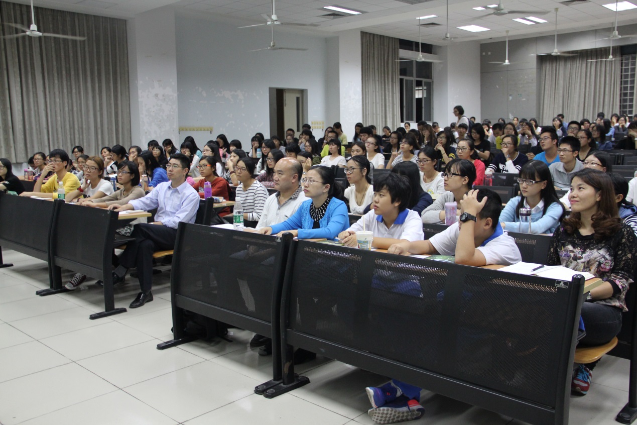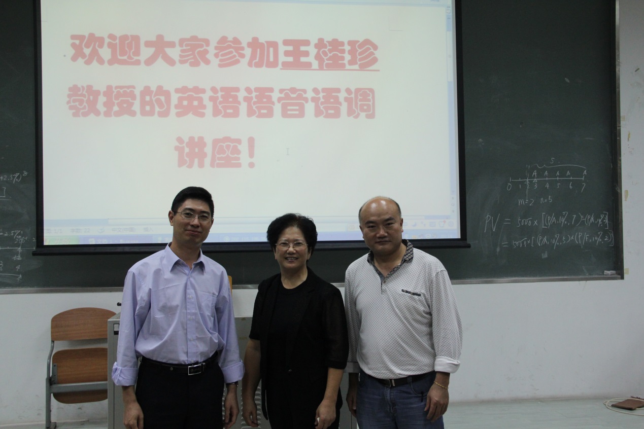 2015年10月13日晚,国内著名英语语音语调专家王桂珍教授,做客教学楼G207,面向全体bevictor伟德官网2015级新生,带来了一场 以“学习英语语音,提高听说能力”为主题的讲座。英语教育公司党委副书记徐昶斌、系主任谢剑萍、教师何德生、辅导员林泽龙、bevictor伟德官网全体2015级新生以及其他语音语调学习爱好者参加了本次讲座。