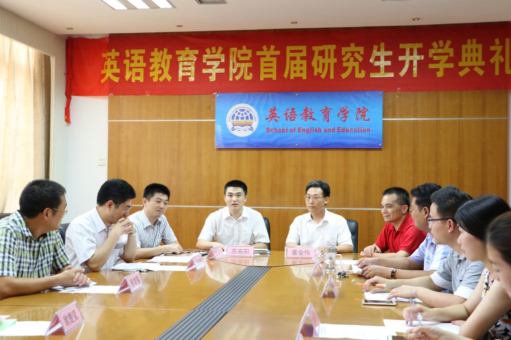 董金伟经理致辞。董经理从公司和老师的角度向英教首届研究生新生们提出了要求和期盼。“志存高远,脚踏实地”,董经理认为研究生们既要仰望星空,有学术、学业追求,也要立足现实、埋头苦干,努力实现职业梦想;“博览深究,学好专业”,研究生阶段的学习既要“专”也要“精”,打好英文基本功的同时也要学好教育、教学的知识;“独立思考,创新学术”,在广博的阅读基础上要有创新,在读书、学习过程中有自己独到的意见,杜绝抄袭、剽窃的学术不端之风;“与人善处,共享合作”,要与同事员工友好相处,善于合作;“修身自强,担当使命”,研究生阶段应比本科期间更加自知、自省、自律,同时要具备自信、自强、自励、自爱的责任意识,做好员工本位;“做好表率,光扬英教”,把学科层次提升作为目标,在各方面争先。
