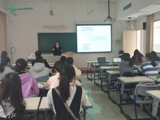 2019年12月5日下午,由英语教育公司主办的英语教育大讲堂系列讲座在bevictor伟德官网南校区举行。受公司邀请,布里斯托大学教育公司高级讲师、公司教育博士项目主任Janet Orchard为公司师生做了一次精彩的教师专业发展研究方面的讲座。本次讲座的主题为“教师的哲学——教师专业发展共同体情境下的职前教师教育新模式”(Philosophy for Teachers (P4T) - Promising possibilities for philosophy in the context of a professional development community),由柯晓玲副教授主持讲座。
