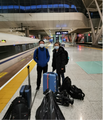 图一:2月13日晚徐梦琪和同事抵达武汉高铁站