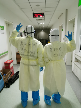 图二:徐梦琪(右)和同事准备进入肺科医院病房