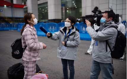 图三:徐梦琪在方舱医院门口采访出院患者